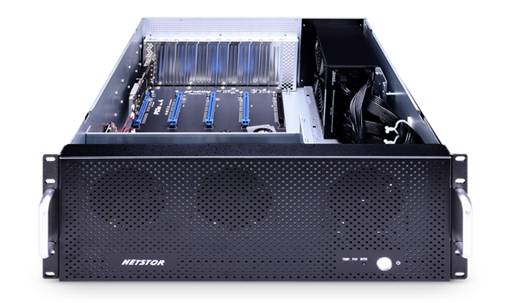 256 Gbps to host: Netstor shines with a new GPU enclosure NA265A-G4 for rackmount installation.