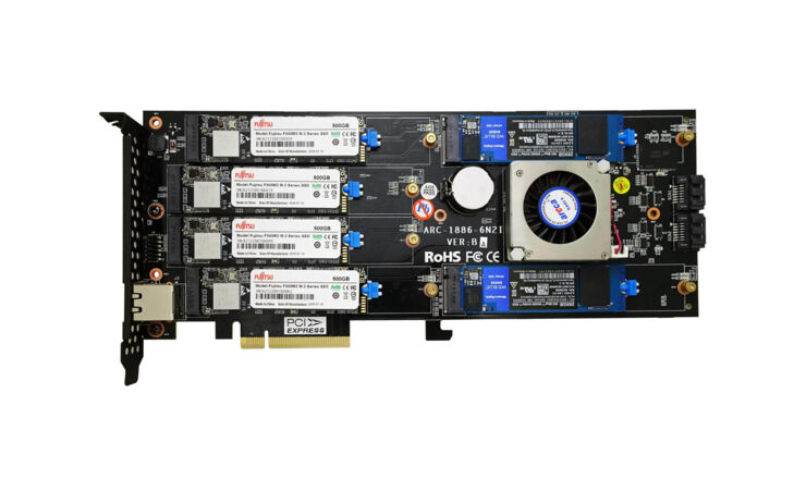 Areca is causing a sensation with mirrorable M.2 NVMe SSDs on the new PCI Express 4.0 (x8) RAID controller from the ARC-1686 series.