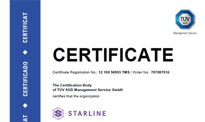 Starline has once again completed and passed certification in accordance with the international standard DIN EN ISO 9001:2015.