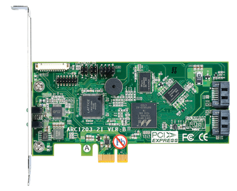 The ARC-1203-2i model from Areca provides two SATA III ports for the PCIe bus (2.0 x1). The RAID controller offers high performance and ensures maximum protection with Fault Tolerance in Data Mirroring. With its two 6 Gbps SATA ports, the budget RAID adapter forms an entry-level solution with RAID security for desktop and workstations as well as entry-level servers.