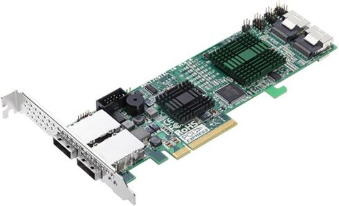Host bus adapters of the ARC-1320 series form a low-cost 6 Gbit/s solution with improved reliability and performance at the same time. They are available with a variety of internal and external port configurations and broad driver support, especially for tiered storage architectures. For example, the SAS host adapters allow large-scale expansion of direct-attach storage (DAS) arrays via external ports, connecting up to 128 devices via their SFF-8088 connectors. This makes the 6 Gbps host adapters ideal for large-capacity external storage RAID and non-RAID installations.