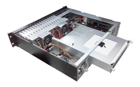 The NetStor NA338TB3 is a 2U enclosure for mounting a Mac mini, three 3 PCIe slots and 16 SFF drives. The SAS/SATA enclosure is ideal when there is no space available in the Mac, server or workstation, but PCIe slots and high storage capacity are still needed.The built-in Mac mini connects to the enclosure via a Thunderbolt cable. The three available PCIe slots - full length - are compatible with popular video editing cards such as those from BlackMagic, Matrox, AJA, or RED.A pre-installed 12 Gbps SAS RAID controller from Areca provides high data transfer rates to the drives, enabling 4K video editing, recording, and other applications. The controller is also equipped with an external miniSAS x4 HD expansion port that provides additional storage capacity via JBODs if needed.