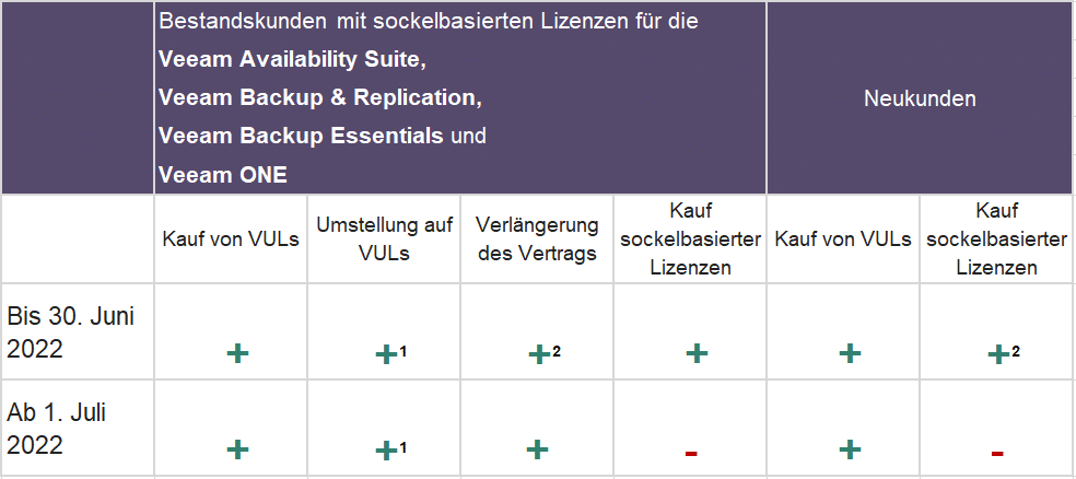 Veeam stellt deswegen – mit dem nötigen Vorlauf von acht Monaten – zum 1. Juli 2022 den Verkauf von unbefristeten sockelbasierten Lizenzen für alle Editionen der Veeam Availability Suite, Veeam Backup & Replication, Veeam Backup Essentials und Veeam ONE also an Neu- und Bestandskunden ein.
