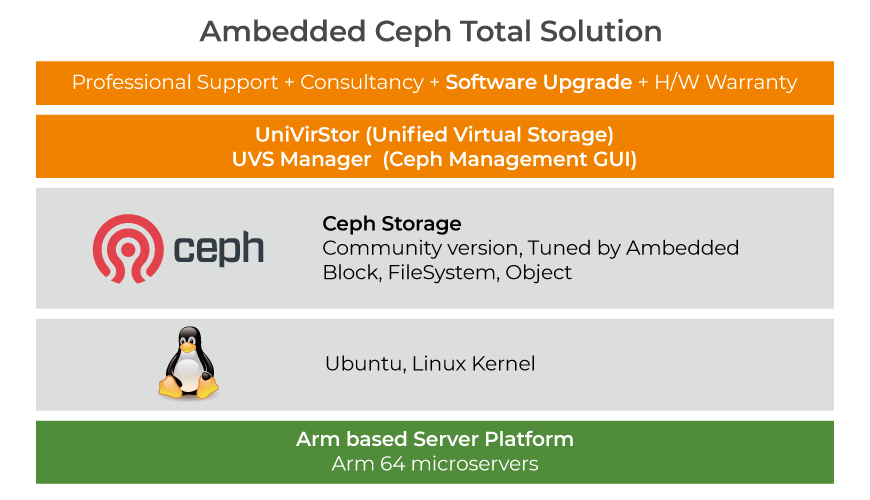Ambedded liefert also nicht nur die Hardware, sondern auch das komplette Software-Paket aus einer Hand: Im UniVirStor Software-Paket ist ein passendes Linux-OS, eine Ceph-Instanz sowie eine Ceph-Management-GUI (UVS-Manager) enthalten. Dadurch wird es den Ambedded-Usern ermöglicht die Bereitstellung, das Management, den Betrieb und die Wartung der Ceph-Cluster zu automatisieren.