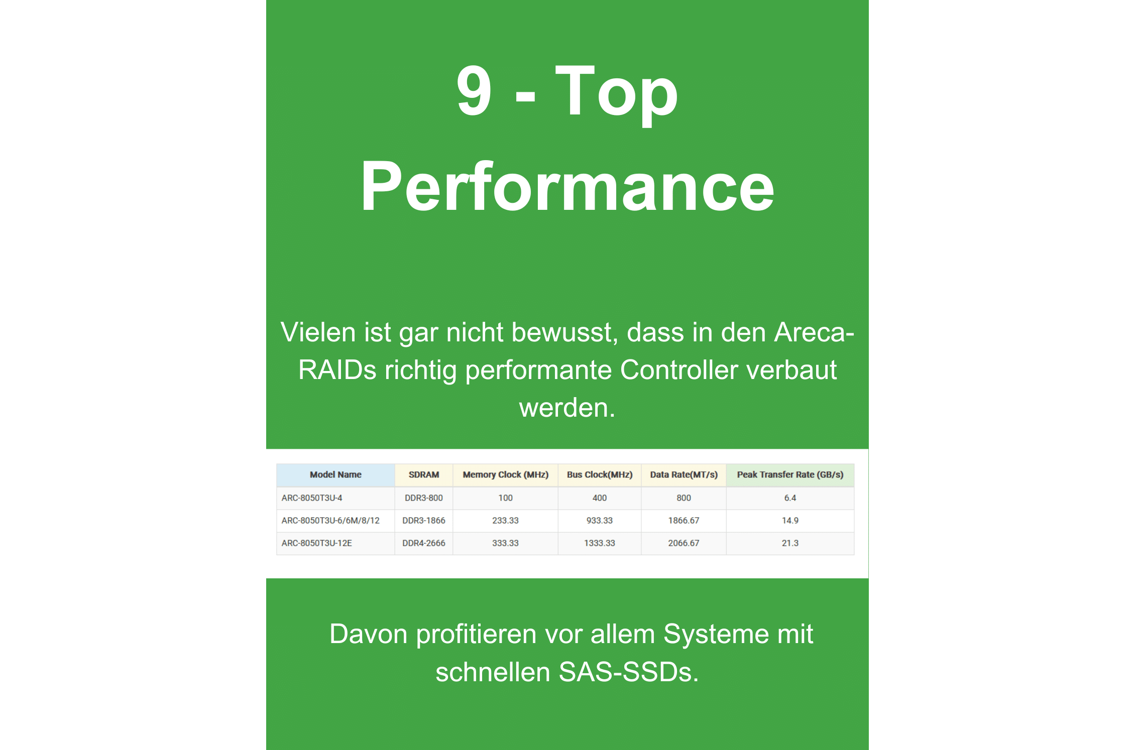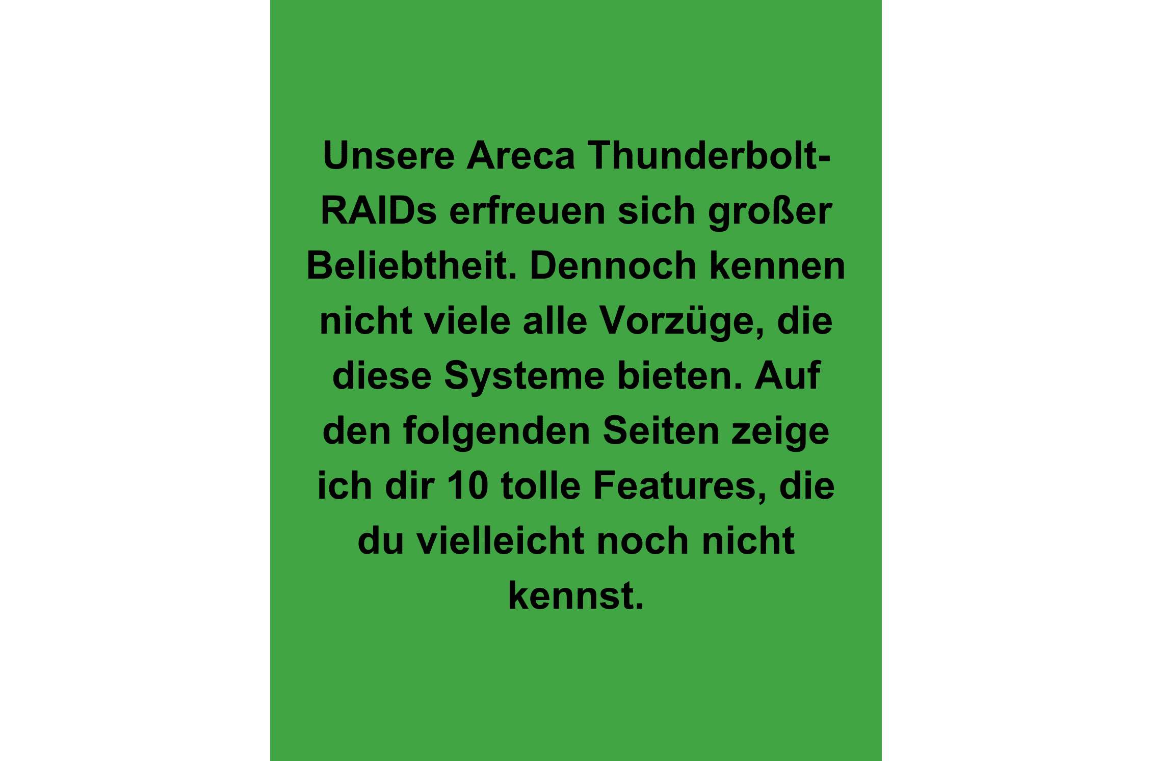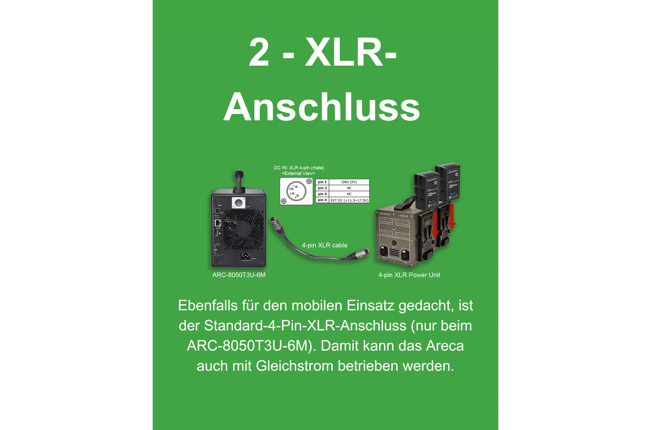 Geeignet sind die kompakten Speicherwürfel überall dort, wo große Datenmengen an einzelnen Arbeitsplätzen schnell verfügbar sein sollen. Das gilt besonders für die Medienbranche etwa beim Audio- oder Videoschnitt als auch beim Foto-Composing. Da es gerade dort keine störenden Geräusche geben darf, verbauten die Areca-Ingenieure im ARC-8050T3U eine intelligente Kühlung. Sie passt sich kontinuierlich den Umgebungsbedingungen an, indem sie die Drehzahl des bürstenlosen Lüfters automatisch regelt.