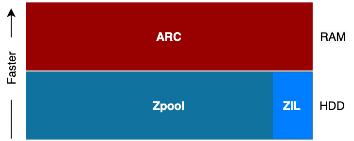 - ZFS verfügt über ein Write Intent Log (ZIL), in dem ZFS synchrone Operationen protokolliert, bevor sie in das ZPool-Array geschrieben werden.