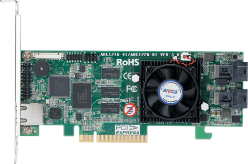 Arecas hochperformante ARC-1226-8i 12 Gbit/s SAS RAID-Contoller unterstützen bis zu acht interne SAS/SATA-Datenträger.Die PCIe 3.0 Host-RAID-Controller bilden eine kostengünstige Lösung für bis zu acht SAS-Peripheriegeräten. Dabei sind sie abwärtskompatibel zu 6 Gbit/s und 3 Gbit/s SAS/SATA-Festplatten. Mit 1 GB Onboard-DDR3-1600-SDRAM vergügt die ARC-12x6-Serie über üppig ausgelegten Cache-Speicher, der sich optional per BBM vor Stromausfällen absichern lässt.