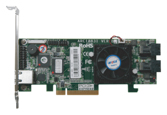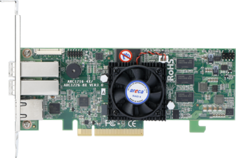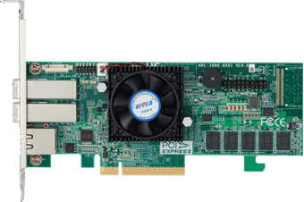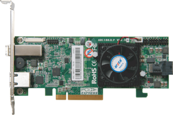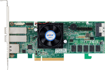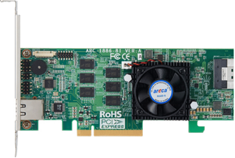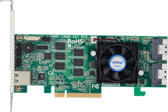 Die Low-Profile-Modellvariante ARC-1686-2NOD passt auch in kleine Server-Gehäuse und unterstützt dabei die RAID-Level 0, 1, Single Disk (Single/Dual) und JBOD.