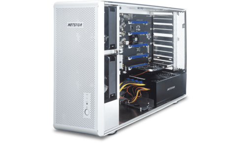 Das GPU-Nachrüst-Gehäuse NA255A von Netstor verwendet die neueste PCI-Express Technologie (PCIe Gen3 ×16) als Hostschnittstelle. So ermöglicht es eine rasante Zusammenarbeit zwischen den dort eingebauten bis zu vier GPU-Karten (mit doppelter Breite) und dem Host. Das Gehäuse selbst verfügt über vier PCIe 3.0 ×16 Steckplätze auf der Backplane. Sie beherrschen alle PCIe-Variationen: ×1, ×4, ×8 und ×16 GPU- oder andere PCIe-Karten. Dabei sind sie abwärtskompatibel für Gen2-GPU- oder PCIe-Karten. So lassen sich an jeder Workstation mit dem Netstor NA255A Anwendungen bearbeiten, die Hochleistung erfordern: Sie ermöglichen das Arbeiten mit fortschrittlichen Farbkorrekturwerkzeugen wie etwa DaVinci Resolve von Blackmagic Design, Datenanalysen für Geschäftsentscheidungen in Echtzeit, Machine Learning oder Deep Learning sowie mit Berechnungsprogrammen wie MATLAB, Mathematica und LabView.