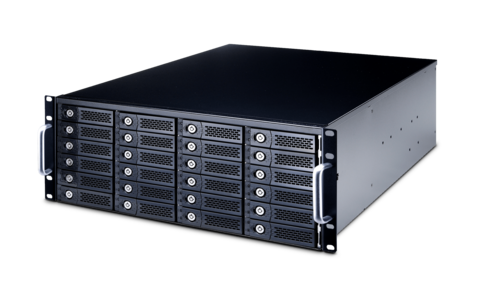 Das 4HE-Rackmount offeriert in 24 Einschüben zum einen große Kapazitäten und stellt zum anderen drei zusätzliche PCIe-Slots (zwei davon PCIe x16) bereit. So lassen sich auf einfache Weise PCIe-Spezialkarten in einem angeschlossenem Server ergänzen.Über einen optionalen RAID-Controller von Areca, Broadcom, Microsemi oder Highpoint werden indes die Laufwerke abgesichert. Zusätzliche Sicherheit offeriert der Netstor-Speicher mit redundanten Netzteilen, einem integrierten Temperatur- und Lüfter-Überwachungssystem sowie einer umfassenden Signalisierung.